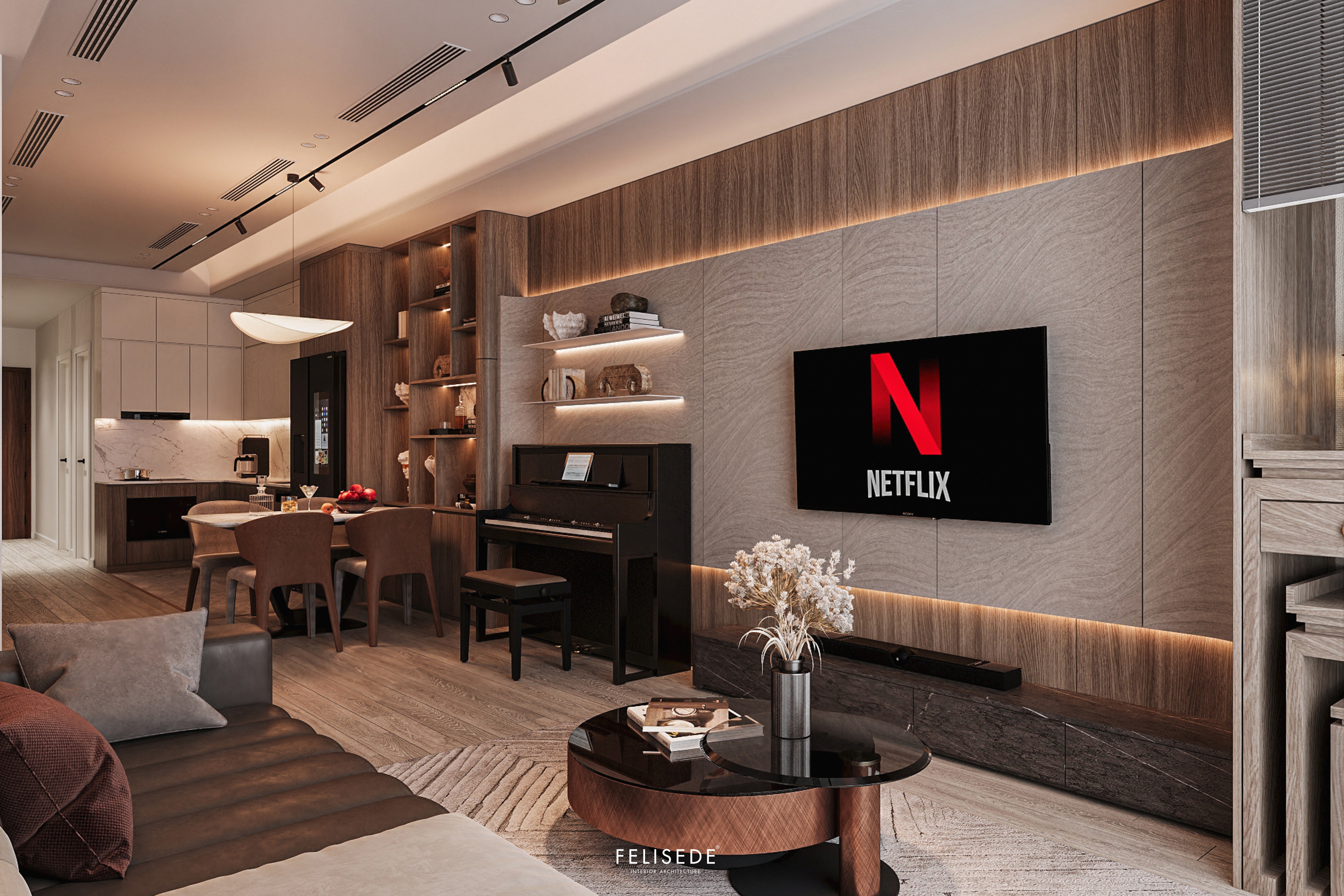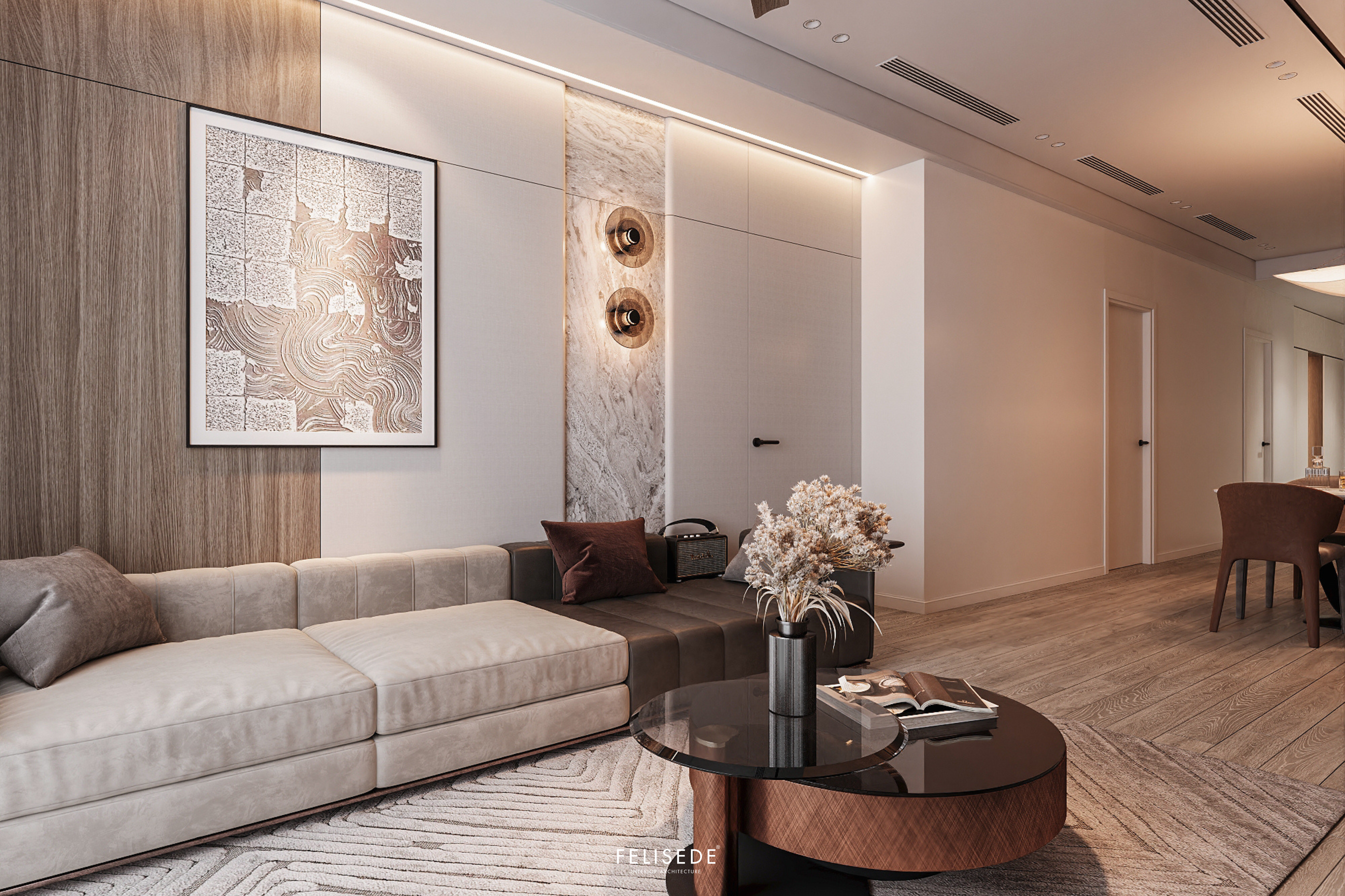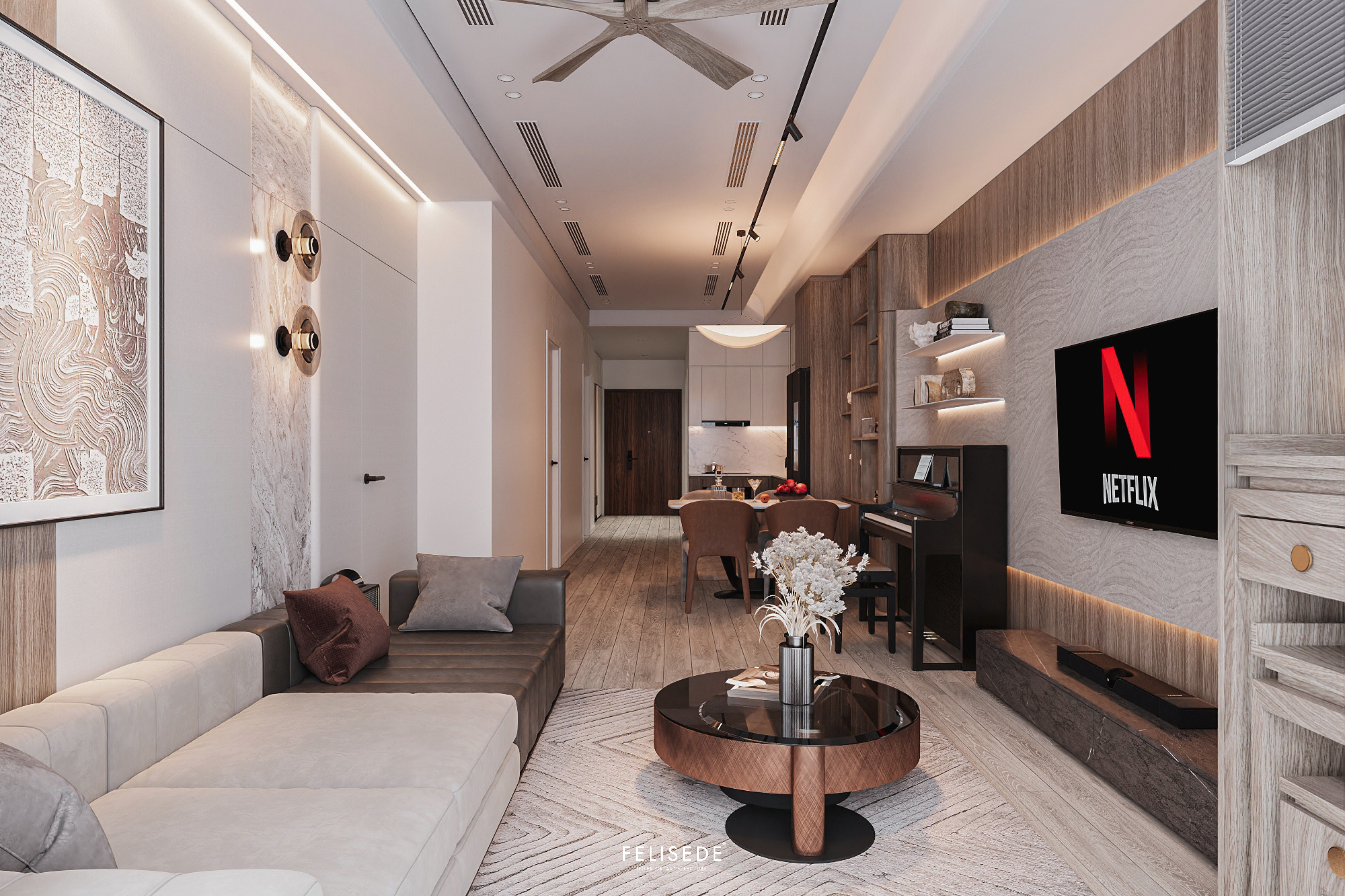 Căn hộ chung cư diện tích 120m² được hoàn thiện theo phong cách hiện đại, chú trọng sự hài hòa giữa công năng và thẩm mỹ. Không gian sử dụng ánh sáng tự nhiên tốt, bố trí nội thất gọn gàng, tạo cảm giác thoáng và dễ chịu khi sinh hoạt.