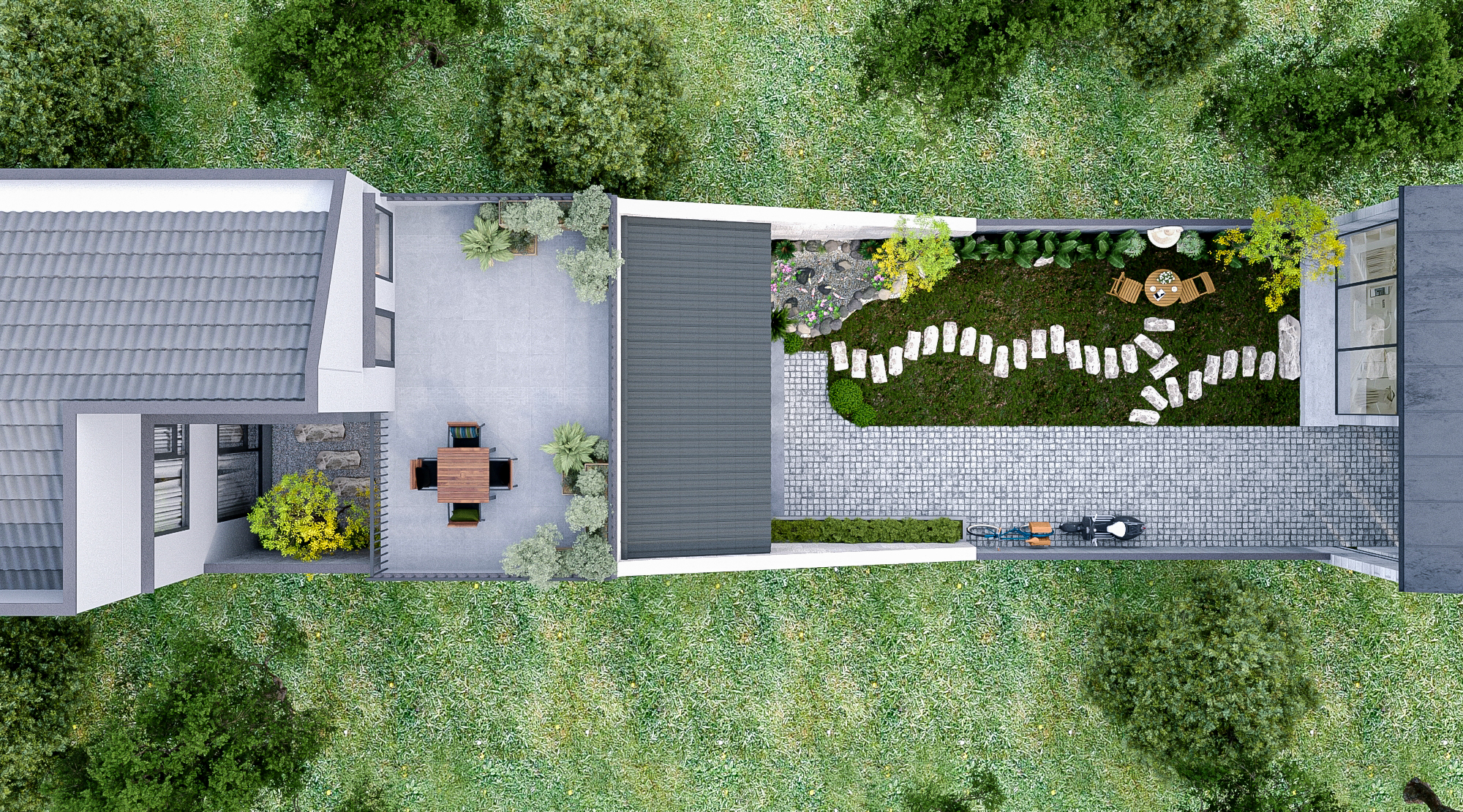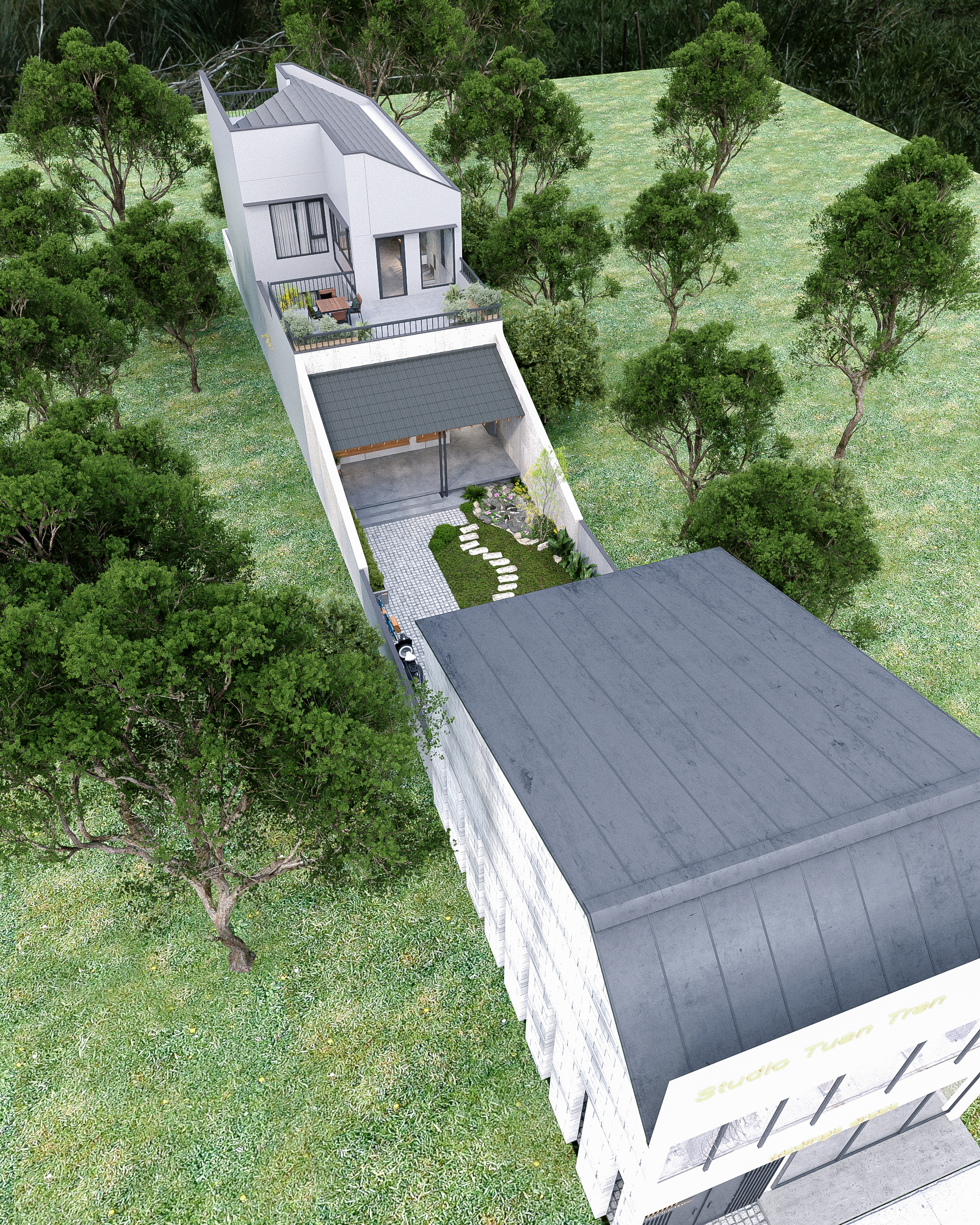 Phần diện tích còn lại là khuôn viên vườn mở, phục vụ chụp ảnh và sáng tạo nghệ thuật.